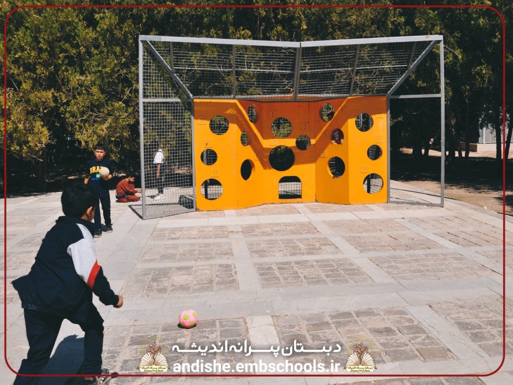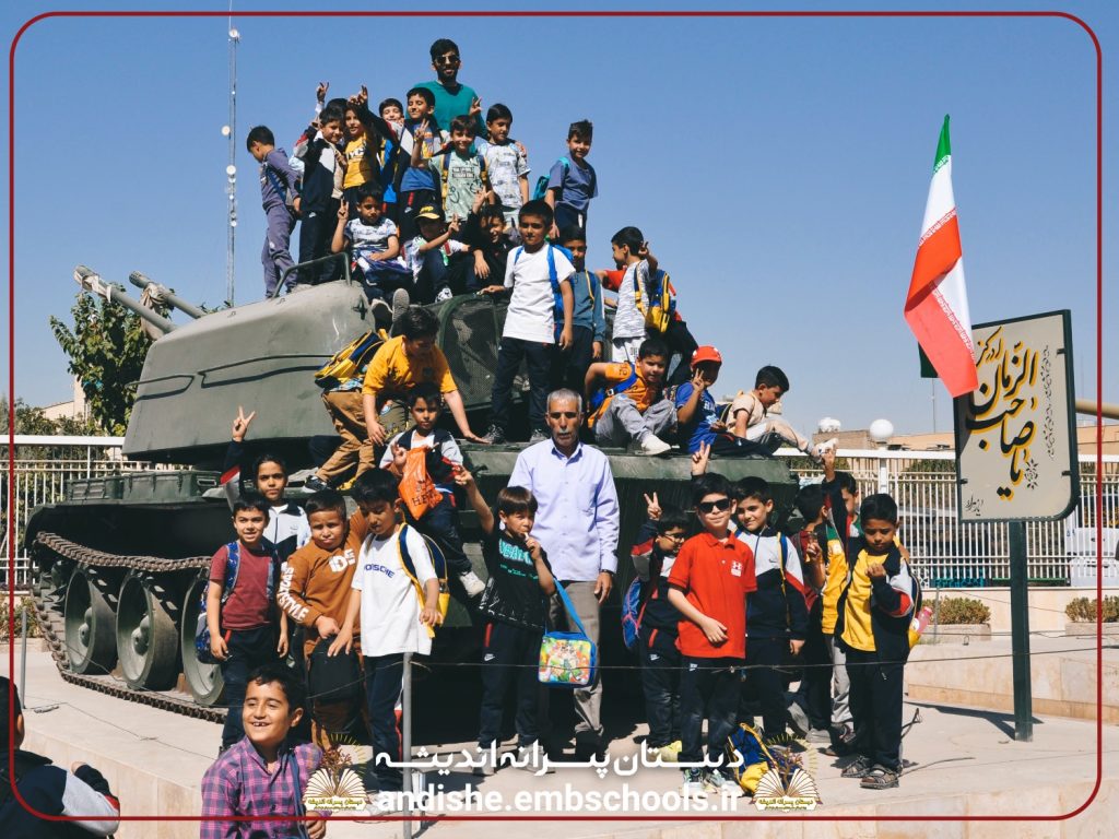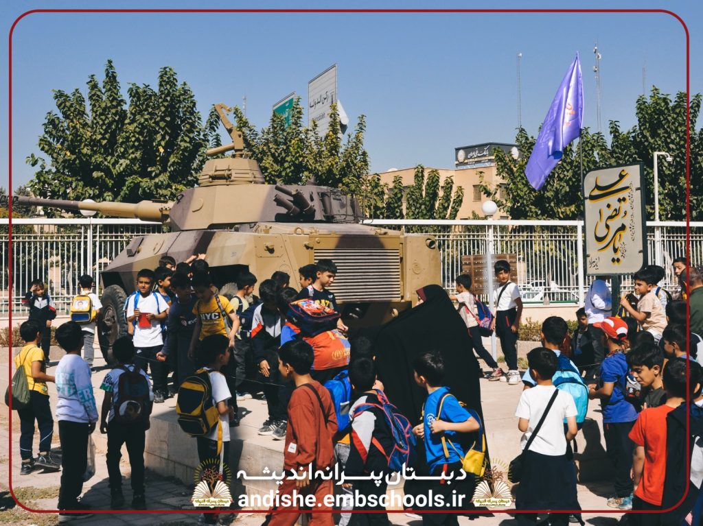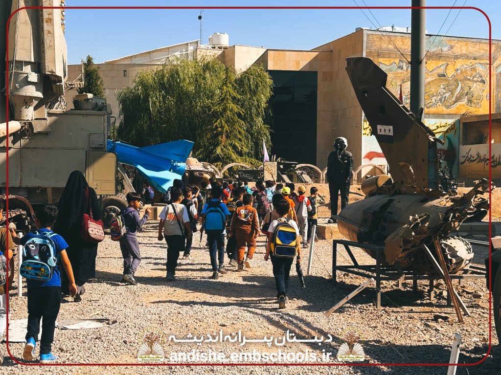بازدید از موزه دفاع مقدس و عکسهای یادگاری با ماکت ها و آثار دوران جبهه و جنگ – کاوشگری های بامزه درس علوم در فضای باز – بازیهای دورهمی و گروهی در فضای باغ غدیر مثل دیوار پنالتی و گلکوچیک ۳ به ۳ و…